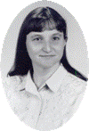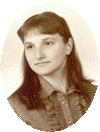 Egyetlen leánykori képem. Az érettségi tablómról származik, 1982-ből. A tablókép "nagyanyáink is ilyenek voltak" stílusban készült. A hajam csak erre a fél órára volt ilyen laza kontyba feltekerve. Már nem emlékszem, hogy melyik osztálytársam készítette, de arra igen, hogy sokáig tartott, mert állandóan lebomlott. Bár a képen nem látszik, meg kellett küzdenem azért, hogy ne legyek kisminkelve. |